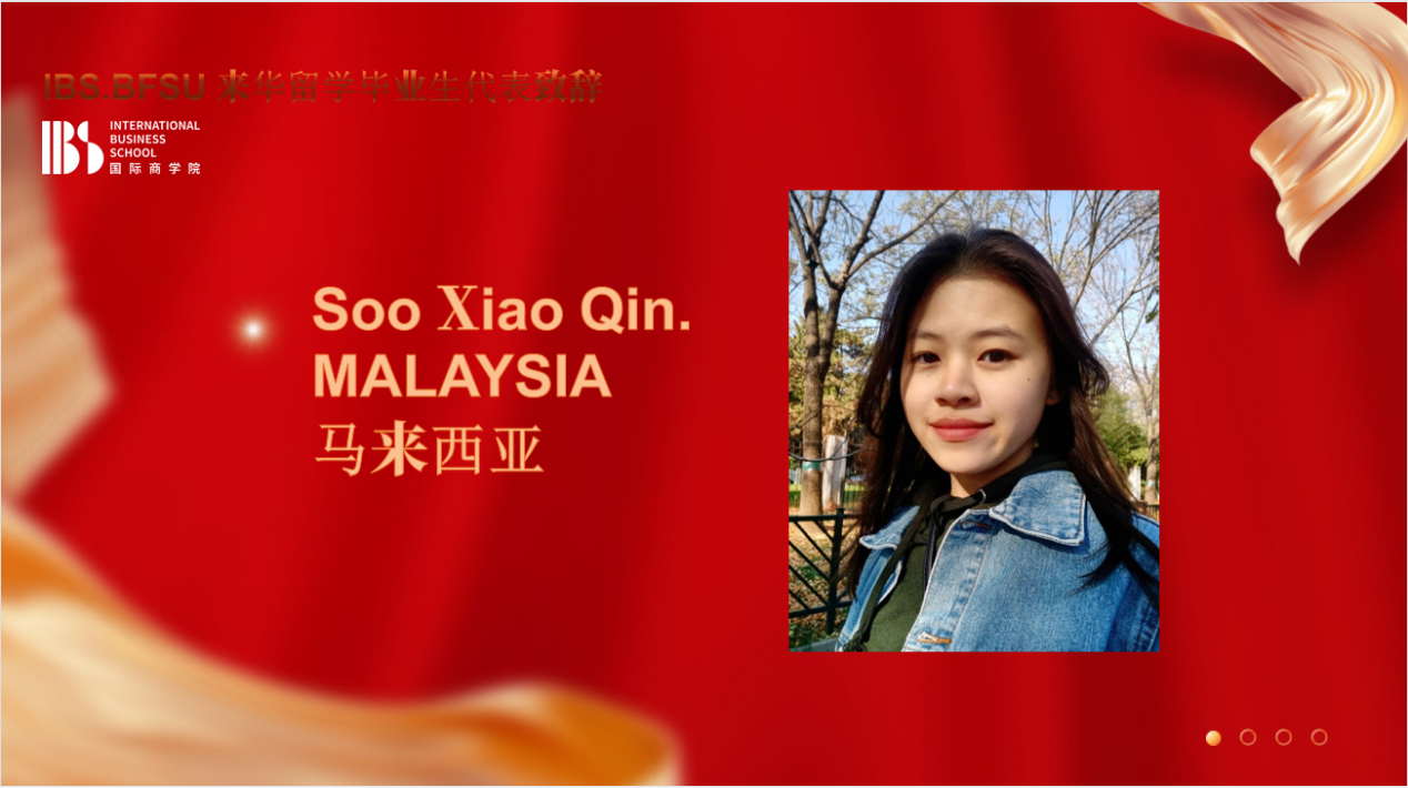 Soo Xiao Qin from Malaysia and El Hanaoui Zineb from Morocco delivered speeches as representatives of the 2022 graduating class,sharing their experiences of studying in China.