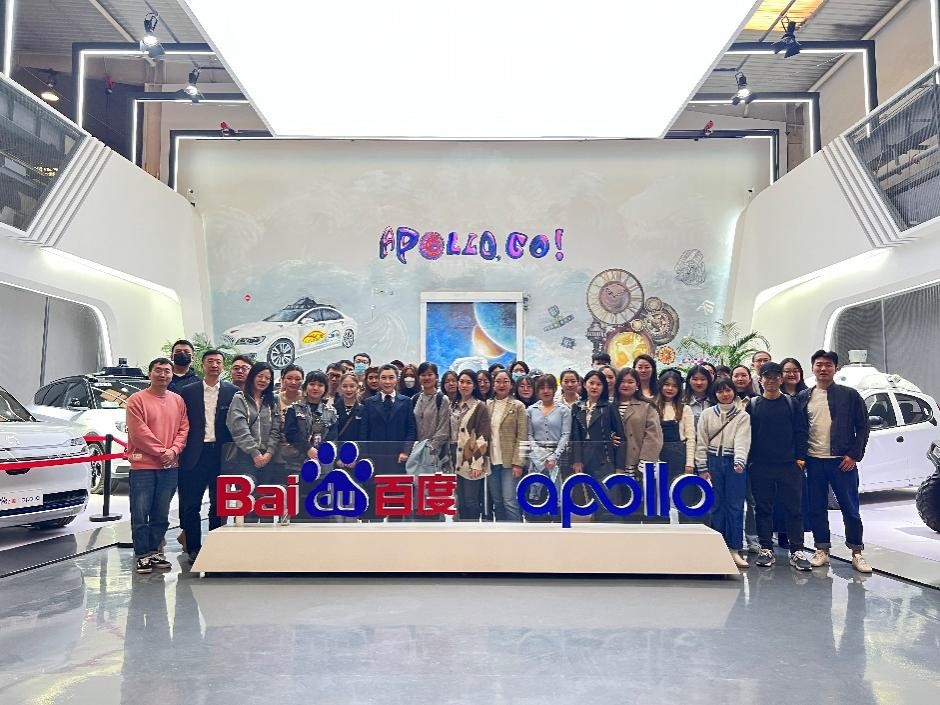 2023年3月9日,北京外国语大学国际商学院MBA的同学们,在洞见研究院创始人兼研究总监秋源俊二老师、MBA中心徐亚晖老师的带领下参访了位于北京亦庄的百度Apollo park。