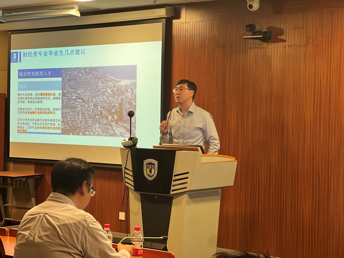 3月22日下午,国际商学院与澳洲会计师公会于北京外国语大学国际大厦联合举办主题为“Think Ahead Be Smart财经类专业就业指导”的讲座。本次讲座邀请到华智资本集团联合创始人徐泽森先生作为主讲嘉宾,澳洲会计师公会代表曲大可先生、国际商学院研究生和部分教师参与本次讲座。