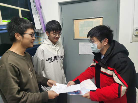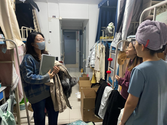 11月24日至28日,为深入了解学生在校生活和住宿情况,及时解决同学们在生活中遇到的困难,北京外国语大学党委组织员、国际商学院学生事务办主任李文斌,国际商学院研究生团总支书记、辅导员谭佳琳,本科生团总支书记、辅导员张莹,辅导员王福多等人深入学生宿舍,慰问在校同学。