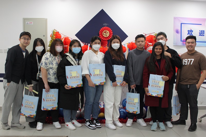 根据学院传统,我们此次也为近期返校的留学生准备了迎新礼包,包含学院纪念T恤衫、文件夹,校历等丰富的小礼品。国际商学院学生事务办公室李文斌主任为学生们派发迎新礼包,并与留学生合影留念。