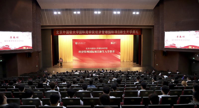 国际商学院党总支书记李春丽首先为新生致欢迎辞,李春丽书记代表学院祝贺新同学们加入北外国商,表达了学院对国际项目同学的关爱和鼓励,也给大家提出了宝贵建议,希望同学们能够“培养自己的毅力,走出舒适区,砥砺德行,勇敢前行;同时培养自己开放的心态,兼容并蓄,博学笃行,培育自己的人生品格,在国商拥有一场精彩的求学之旅”。
