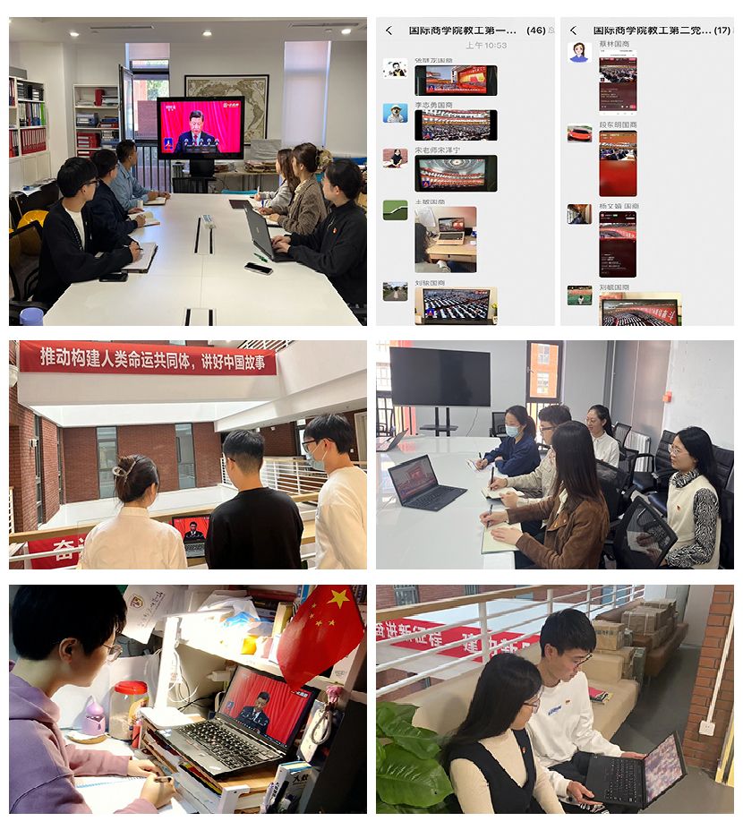 2022年10月16日上午10时,万众瞩目的中国共产党第二十次全国代表大会在人民大会堂隆重开幕。国际商学院按照校党委部署,组织师生通过各种方式收听收看开幕会盛况。学院党政主要负责人参加了校党委组织的集体收看,教工党支部代表与学生党支部委员在学院306会议室集体观看开幕会直播,学生骨干代表在千人礼堂参加了学校组织的集体收看,其他师生员工通过电视、网络直播等形式收听收看了开幕会盛况。