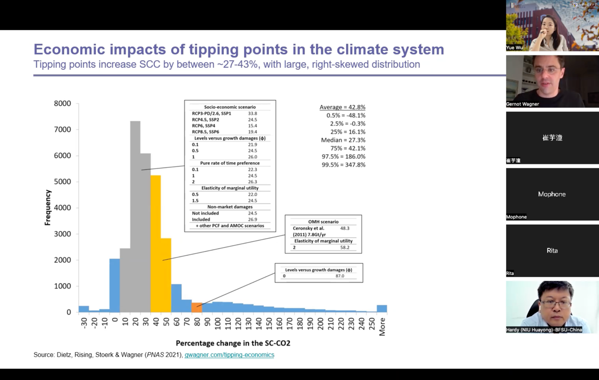 俄乌冲突以来,国际油价屡创新高,全球能源与气候政策面临挑战。讲座初始Wagner博士从俄乌冲突带来的全球经济影响及气候政策变化出发,引出本次讲座的主要内容,并具体的探讨了跨大西洋分歧(Transatlantic Divergence)中美国及欧洲的能源与气候政策。接着,Wagner博士结合经济学原理分析了气候变化及其不确定性带来的经济影响程度,以及对相关政策的启示。最后,Wagner博士探讨了气候政策与国际关系和地缘政治之间的紧密关联。