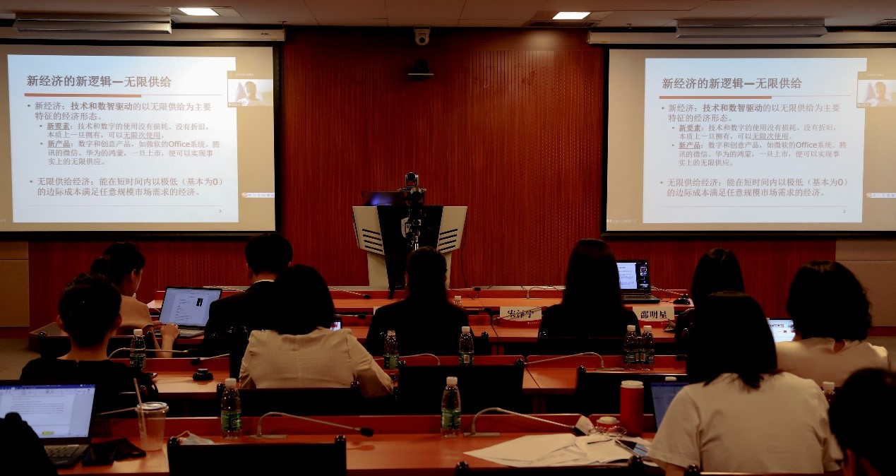 周春生教授从无限供给对传统经济思维的颠覆出发,讲解了新二元经济的概念,探讨了新二元经济的增长模型和经济结构问题以及无限品的定价和商业模式设计等问题。最后,周春生还就相关问题与各位优秀学子进行了线上互动。