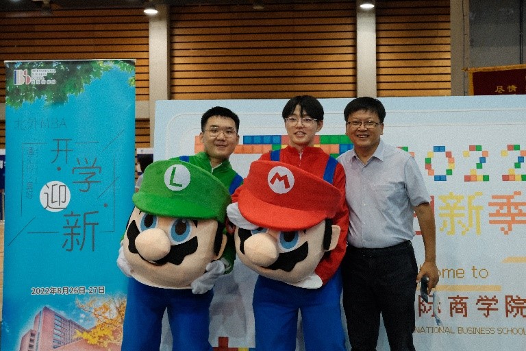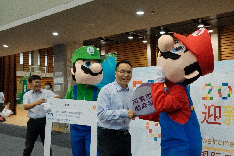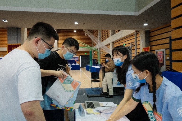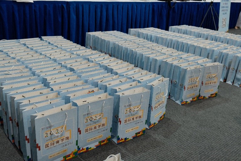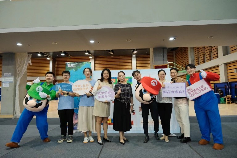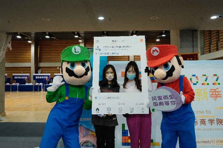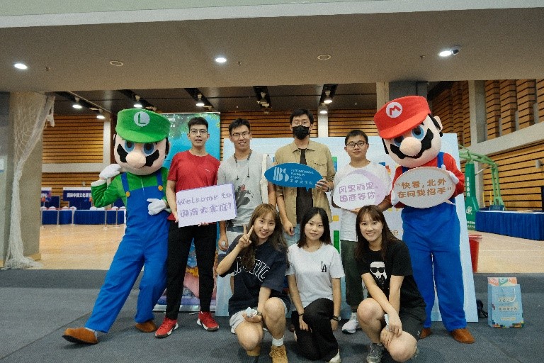 中午13时,学院研究生、本科生团总支成员及志愿者们早早来到体育馆二层做最后的迎新准备,一排排整齐罗列的新生大礼包、可爱创意的国商合影板、整装待发的“马里奥”都在翘首以盼,为从远方奔赴而来的国商新生们带来第一份欢迎礼物,掀开在北外国商生活的第一页!