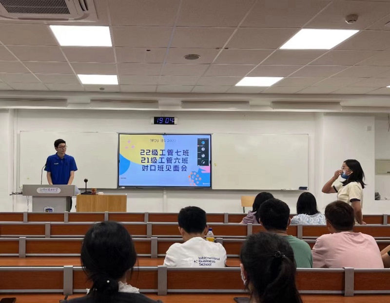 2022年9月4日18:00,国际商学院2021、2022级本科生于东校区逸夫楼联合开展对口班见面会活动。