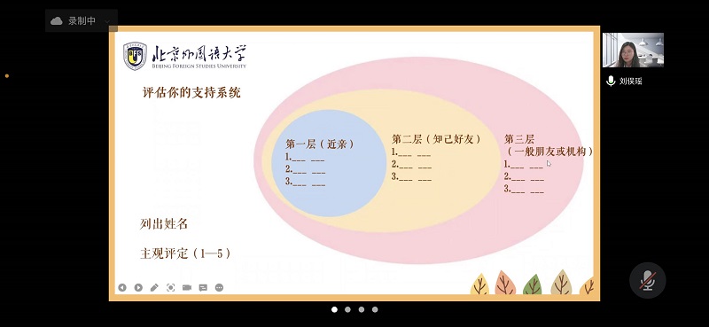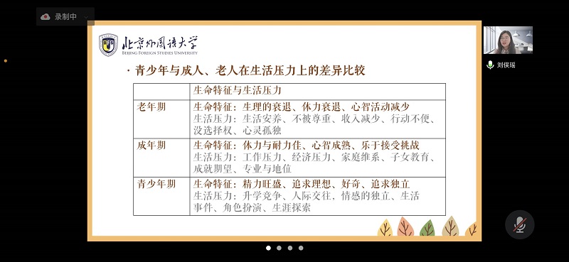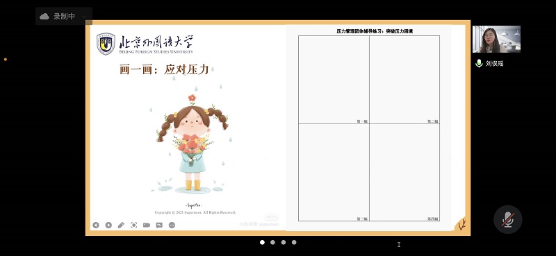 2022年5月11日,北外国际商学院阳光心理大讲堂顺利举办。本次阳光心理大讲堂,刘俣瑶老师以轻松愉悦的互动方式引导同学们认识压力、评估自身状态,并且教给了大家一些缓解压力的小技巧。通过这次讲座,刘老师对目前同学们常见的心理问题进行了解答,并提供了有效的解决办法。