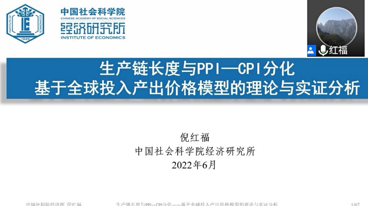 2022年6月10日,国际商学院教师发展中心在线上举办了北外大讲堂“生产链长度与PPI-CPI分化”主题讲座, 主讲人为中国社会科学院经济研究所研究员、中国社会科学院大学倪红福教授。倪红福教授主要研究领域为宏观经济模型及其应用、全球价值链理论及应用、国际经济、经济政策分析等等。