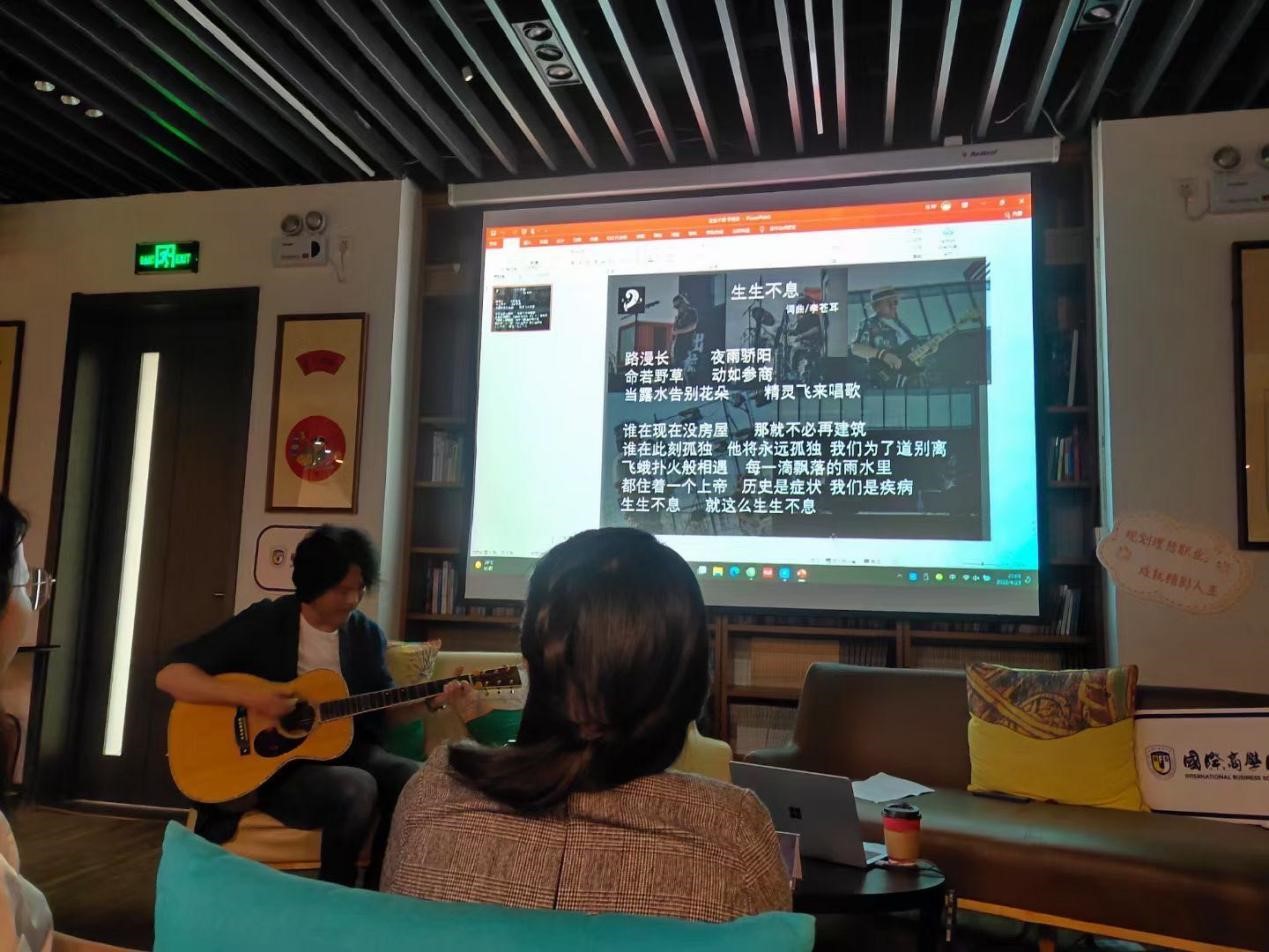 本次访谈活动嘉宾分别是:苍耳乐队主创、主唱、吉他手李苍耳先生,以及国机集团中工国际工程股份有限公司中亚东欧事业部总经理李金伟先生,李苍耳先生历任印力商用置业有限公司华北区域公司副总经理、山东公司总经理、深圳国际信托投资公司;李金伟先生长期投身国家“一带一路”国际工程建设事业。两位嘉宾同时代成长,不同领域耕耘,个人职业历程充实、精彩。两位嘉宾所带来坦诚的职业分享,引发了参会同学的热烈反响,和导师们欢聚畅谈。
