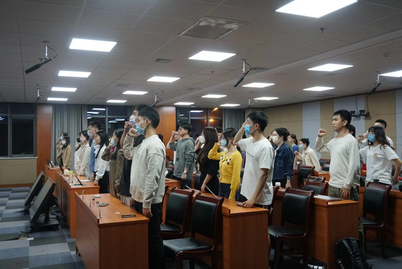 活动伊始,全体成员齐唱共青团团歌《光荣啊,中国共青团》。伴随着振奋人心的歌词,激情慷慨的旋律,每一位在场的同学都激情澎湃地歌唱着。接着,领誓人万格彤带领全体团员重温入团誓词。同学们高举右拳,郑重宣誓,仿佛又回到了刚刚入团时满腔热血的时刻。尽管和初入团时相比,我们经历了很多,但我们对共青团的初心仍然真诚炽热。
