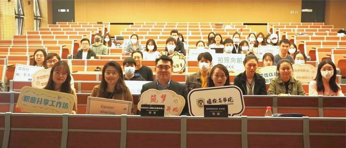 2022年4月16日上午十点,第九届就业力大赛国际商学院预赛行业分享讲座在东校区逸夫楼第二阶梯教室成功举办。讲座邀请智彧管理咨询总经理张喆、ESWIN战略企划室负责人李丰两位业界导师进行行业分享,围绕着如何进行行业选择、如何将自身能力与不同行业以及岗位进行匹配等问题展开分享与答疑。国际商学院研究生团总支书记谭佳琳及100余名学生参加了本次活动。