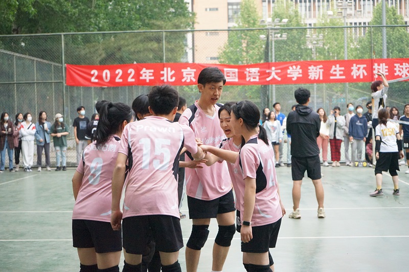 4月28日16:30,北京外国语大学国际商学院排球队与国际新闻与传播学院排球队在东校区排球场展开2022“新生杯”排球赛四分之一淘汰赛的比赛,国商队以2:0的大比分战胜国新,成功入围半决赛。