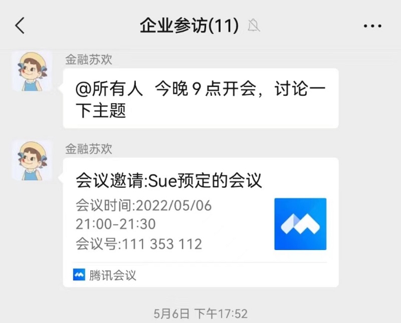5月6日晚9点,《大国品牌》企业参访组进行了第一次集体会议。为了给本次研究确定最佳选题,会议前各小组成员在充分了解企业背景和现阶段发展状况后,以头脑风暴的方式就“《大国品牌》未来发展”问题提交了四份研究方向建议及分析。此后,通过线上会议的方式展开了深入探讨。经过共同讨论,以下三个备选选题通过了初步筛选:《大国品牌》携手中小微企业共同成长、《大国品牌》如何实现国际化、《大国品牌》宣传片的形式创新。