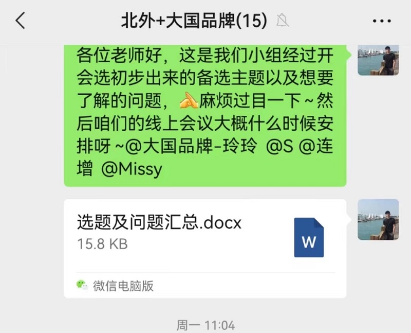 通过与企业代表在线上的即时交流互动,各位组员深刻意识到了在校期间学习理论知识与实际操作中解决企业问题之间存在显著差异。接下来,研究小组将以“实际问题”为导向,努力为《大国品牌》未来五到十年的发展提出更好的建议。