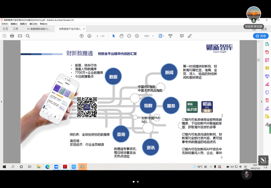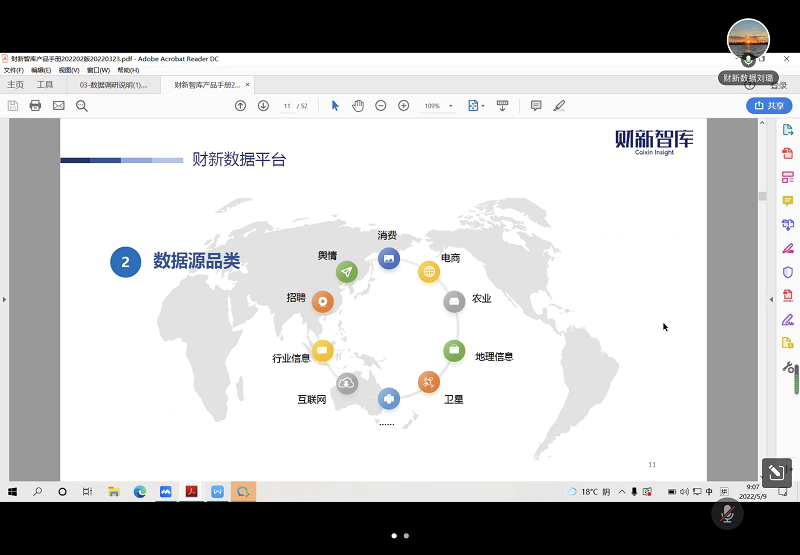 5月9日,财新数据运营中心负责人刘璐以PPT形式为同学们介绍了企业的业务板块以及数据品类等基本情况。