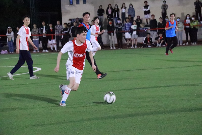 4月10日晚上7:20,“北外杯”男子足球赛半决赛于东校区操场足球场举行,国际商学院代表队以6:4战胜北外教工队,成功晋级决赛。