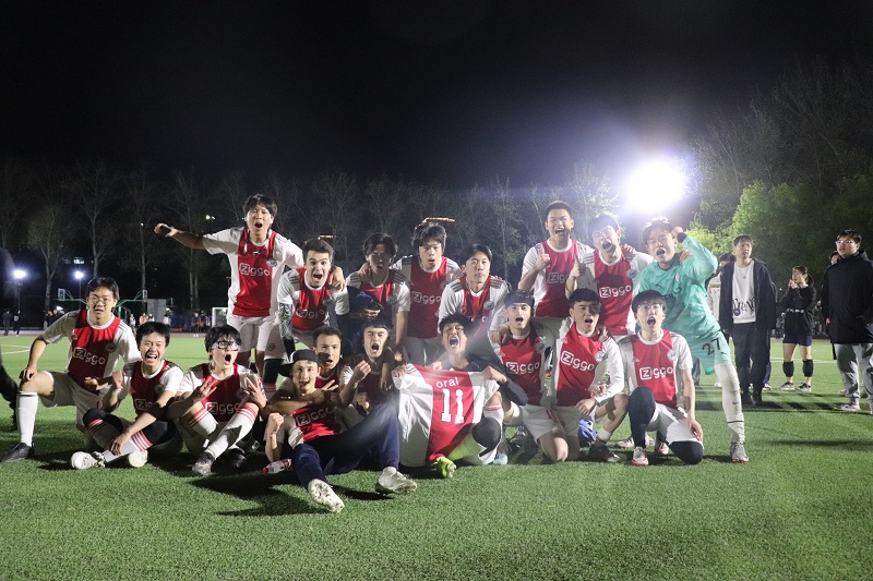 在点球大赛中,我方顶住压力、稳定发挥,以6:5的比分赢得“北外杯”男子足球赛比赛的冠军。
