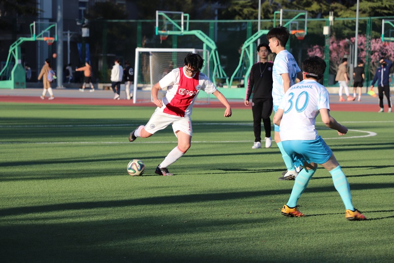 3月31日17:00,北京外国语大学国际商学院男子足球队与北外学院男子足球队于北京外国语大学东校区操场足球场展开“北外杯”男子足球赛的对决,国商以7:1的比分取得第二场比赛胜利。