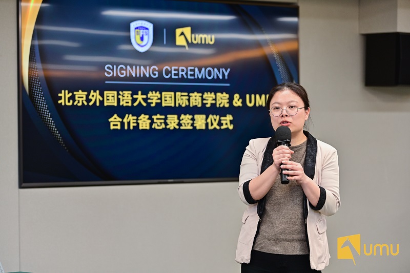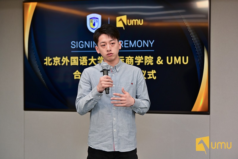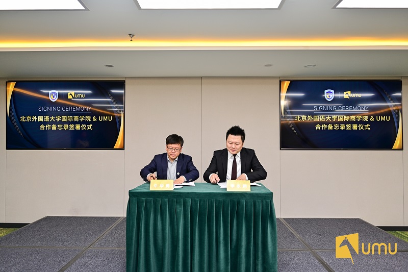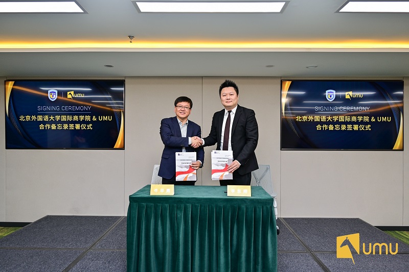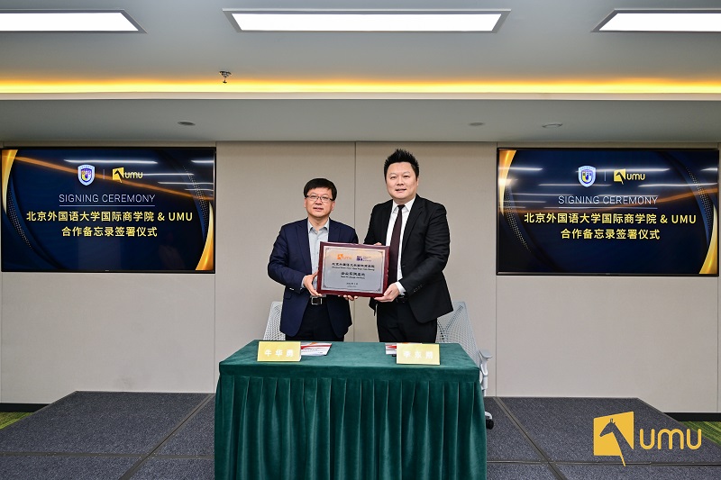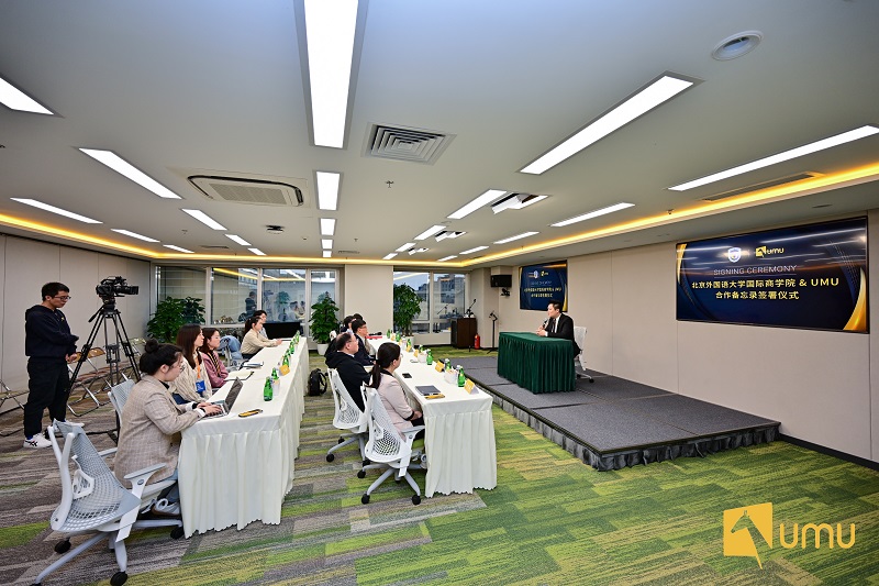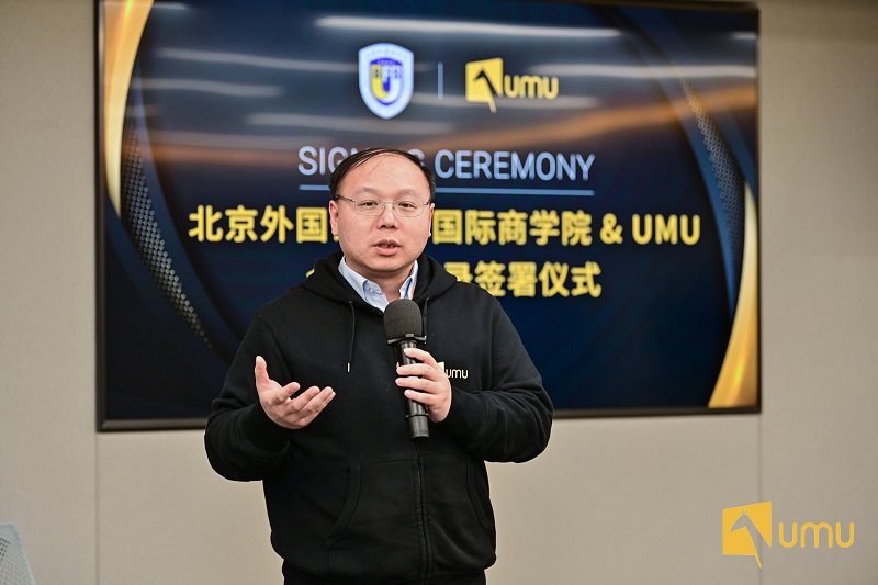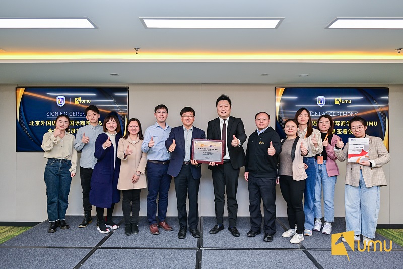 3月30日,北京外国语大学国际商学院师生代表在牛华勇院长的带领下前往北京优幕科技有限责任公司(UMU),参加战略合作备忘录签署仪式。