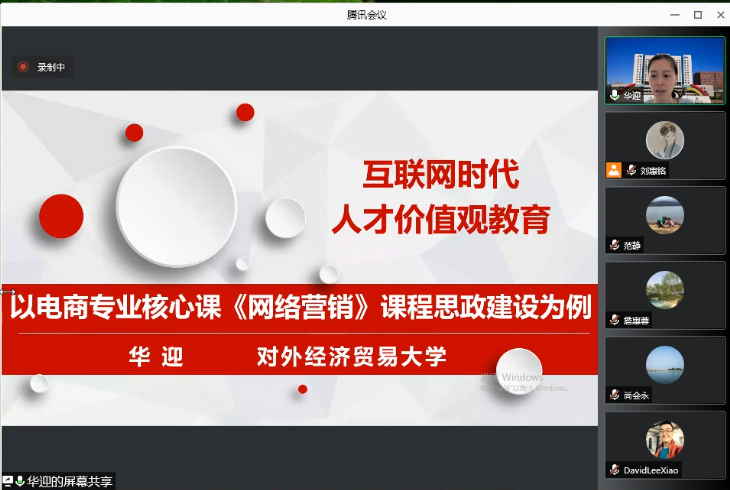 2021年12月30日,国际商学院教师发展中心、本科教学办和教工党支部联合在线上举办本学期第十二次教师活动。来自对外经济贸易大学信息学院的华迎教授为大家带来了一场精彩的讲座,讲座题目为互联网时代人才价值观教育---以电商专业核心课程《网络营销》课程思政建设为例。