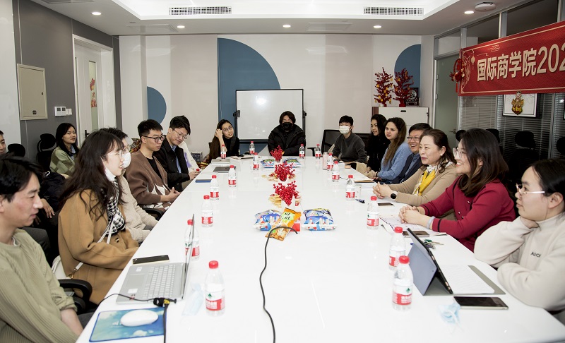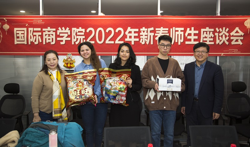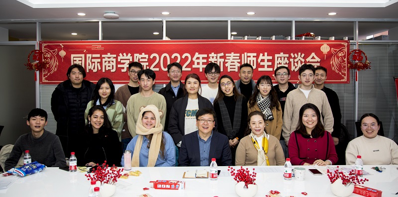 2022年1月26日,国际商学院2022年新春师生座谈会于国内大厦306会议室顺利召开。学院党总支书记李春丽,党总支副书记、院长牛华勇以及留校中外学生代表们欢聚一堂,喜迎新春。座谈会由研究生团总支书记谭佳琳主持。