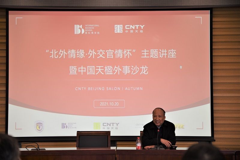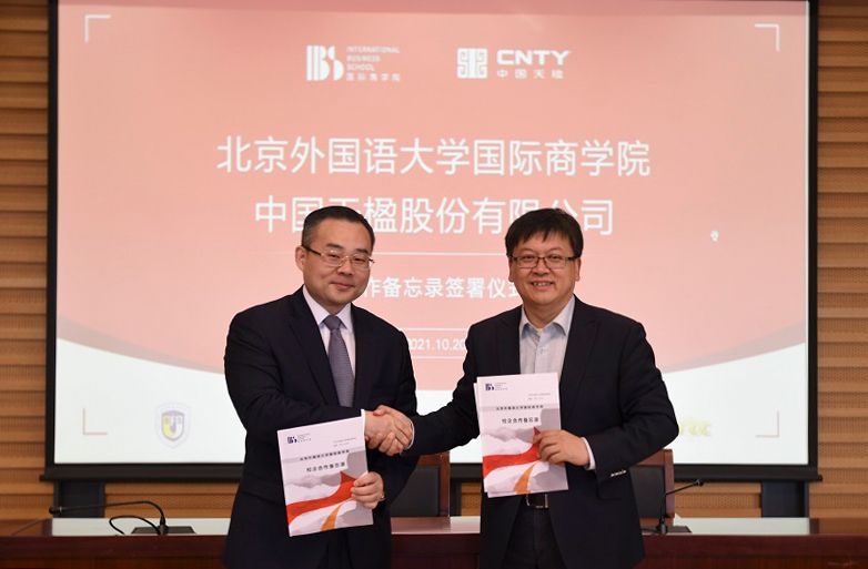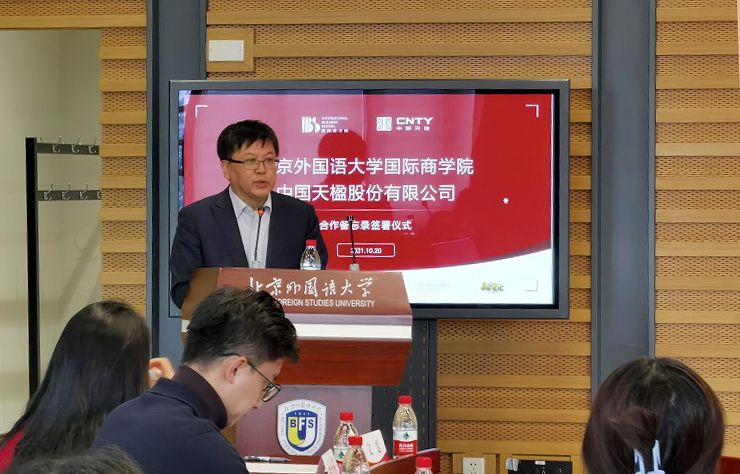 10月20日,北京外国语大学国际商学院与中国天楹股份有限公司举办战略合作备忘录签约仪式,并举行“北外情缘·外交官情怀”主题讲座暨中国天楹外事沙龙活动。中国前外交官联谊会常务副会长、中国前驻牙买加、孟加拉国大使郑清典,中国前驻马里、摩洛哥大使程涛,中国前驻玻利维亚、阿根廷、委内瑞拉、古巴大使张拓,中国前驻加蓬、喀麦隆大使薛金维,中国天楹股份有限公司副总裁徐诚直,外事总监刘春阳,北京外国语大学国际商学院党支书记李春丽,院长牛华勇,副院长邵明星,院务委员李文斌等出席签约仪式,仪式由国际商学院国内合作办公室副主任文雯主持。