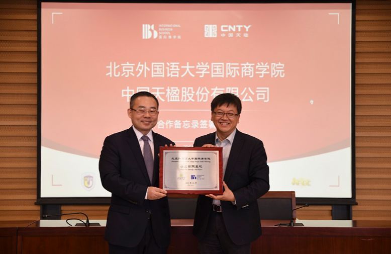 随后,双方签署了合作备忘录,国际商学院向中国天楹股份有限公司颁授“北京外国语大学国际商学院企业实践基地”牌匾。本次合作意味着双方将在学生实践、人才培养、产学研融合等方面进行全方位的合作。