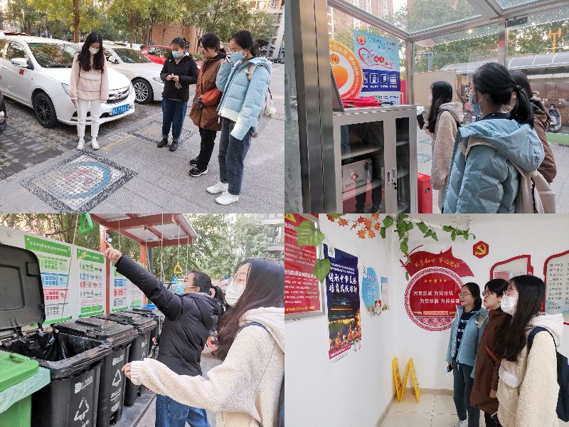 本次共建活动主要以“交流党建经验+参观社区党建成果”结合的形式展开。在交流党建经验的过程中,金域华府社区党支部书记首先对其社区党支部的主要职能、活动类型以及活动方式等进行了相关介绍,并强调了“与时俱进,不断创新”的理念。以开拓创新的精神和锐意改革的勇气研究新情况,解决新问题,才能更好的在社区工作中发挥好党组织的领导作用。接着,金域华府党支部副书记带领管科系学生党支部党员参观了社区的党建成果:从社区服务站,社区垃圾分类站,社区井盖涂鸦,居民废旧轮胎回收改造,到社区暖心驿站,切实感受基层党支部为人民服务的精神。最后管科系学生党支部就基层党建工作中的相关问题与金域华府社区党支部进行了深入探讨,并为之后的活动开展提出了建设性建议。