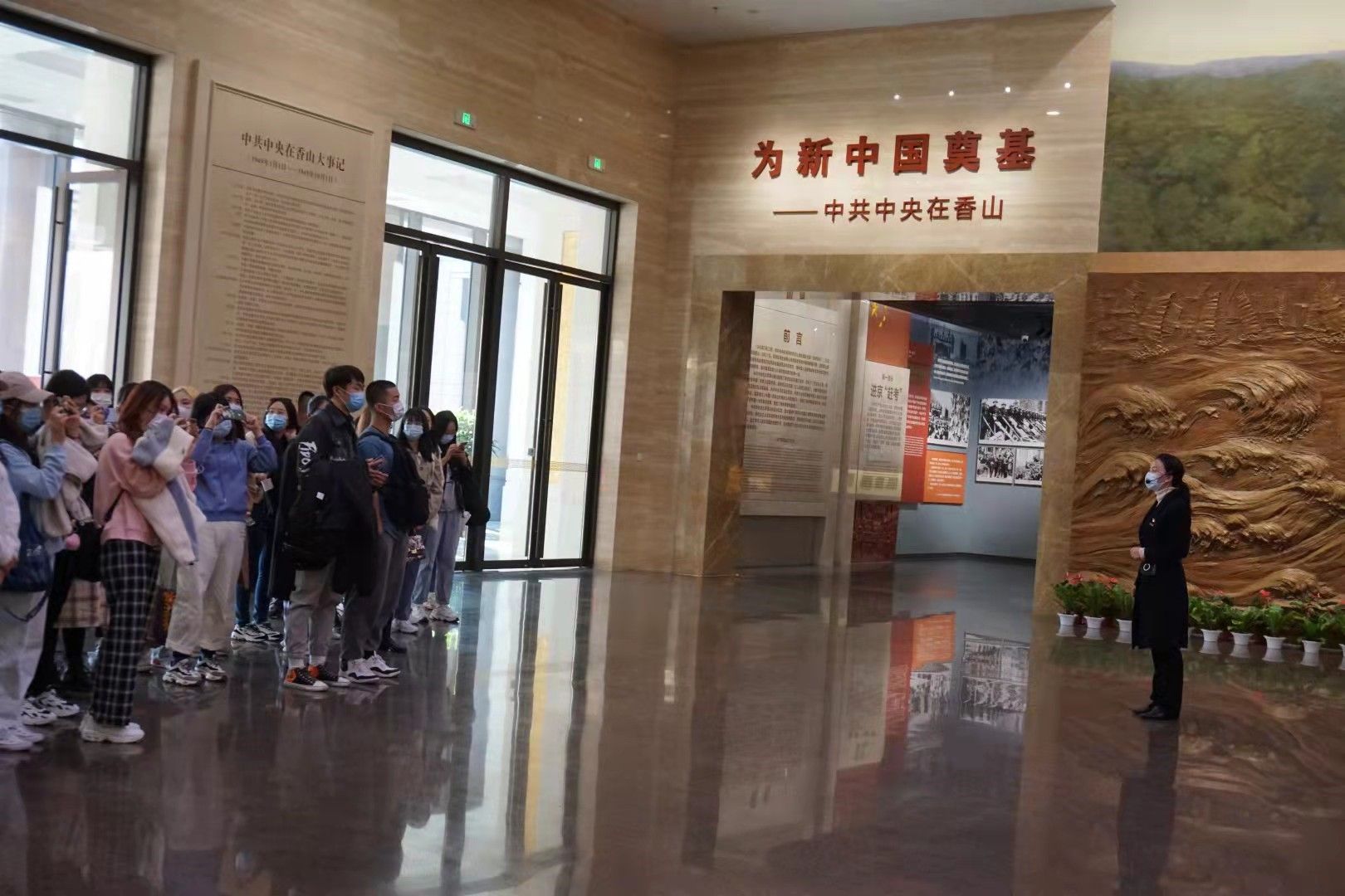 23日下午,同学们来到香山革命纪念馆,参观了《为新中国奠基——中共中央在北京香山》主题展览,展览由进京“赶考”、进驻香山、继续指挥解放全中国、新中国筹建、不忘初心,牢记使命,永远奋斗5个部分组成,这里承载着老一辈革命家艰苦奋斗的历史印迹。