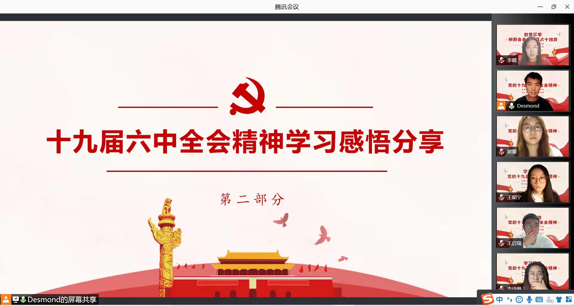 今年是中国共产党成立100周年,也是“十四五”规划开局之年。党的十九届六中全会是重要历史时间节点召开的一场具有全局性、历史性意义的重要会议,肩负着承前启后、继往开来的伟大使命。为学习贯彻党的十九届六中全会精神,汇聚起坚定历史自信、创造复兴伟业的磅礴力量,11月12日晚,北京外国语大学国际商学院研究生团总支学生会召开十九届六中全会公报的线上学习会,集体学习会议有关精神。
