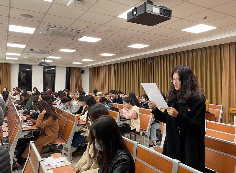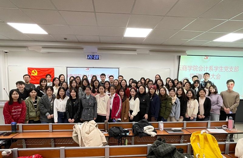 2021年11月14日,国际商学院会计系学生党支部大会于逸夫楼402召开,讨论关于蔡文丽、王玮琳、韦妍如、裴蕾、魏巍、冯紫薇等6位发展对象转为预备党员的问题。党员发展大会由会计系学生党支部书记钟佳伟主持,北京外国语大学党委组织员潘亮和李文斌出席大会。会议应到会有表决权党员36人,实到会有表决权党员30人,超过本支部有表决权党员半数以上,符合规定人数,可以开会。在清点与会人员并宣布到场情况后,支部大会正式开始。