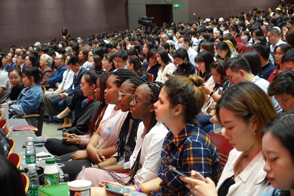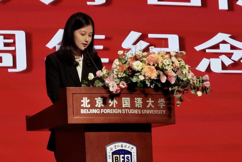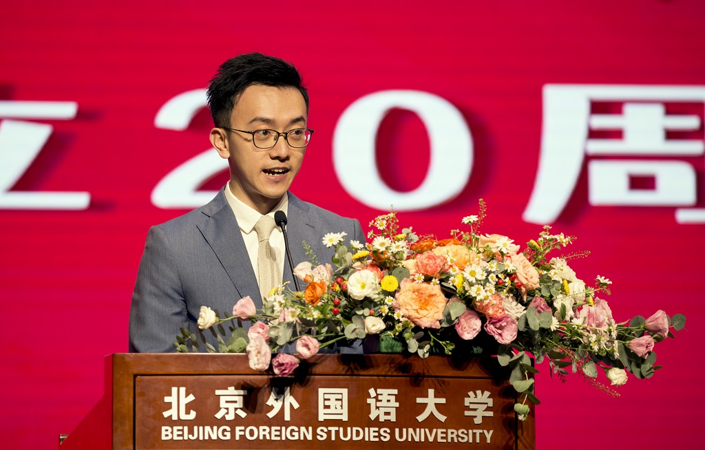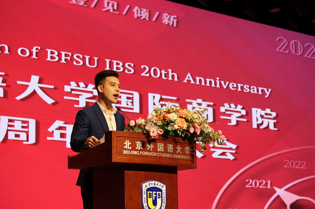 2001级校友陈高迪和孙臻、2009级校友古今、2017级本科生及2021级研究生代表季雨佳,2018级留学生代表约瑟夫先后致辞、发言,讲述了自己在北外国商的求学经历与心得,他们感谢学院的精神传承和老师们的谆谆教导,并将珍惜在求学过程中收获的宝贵精神财富,全力支持北外和国商未来的建设与发展。