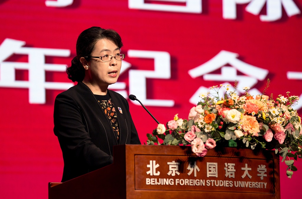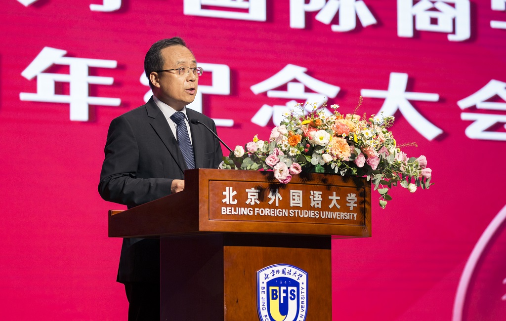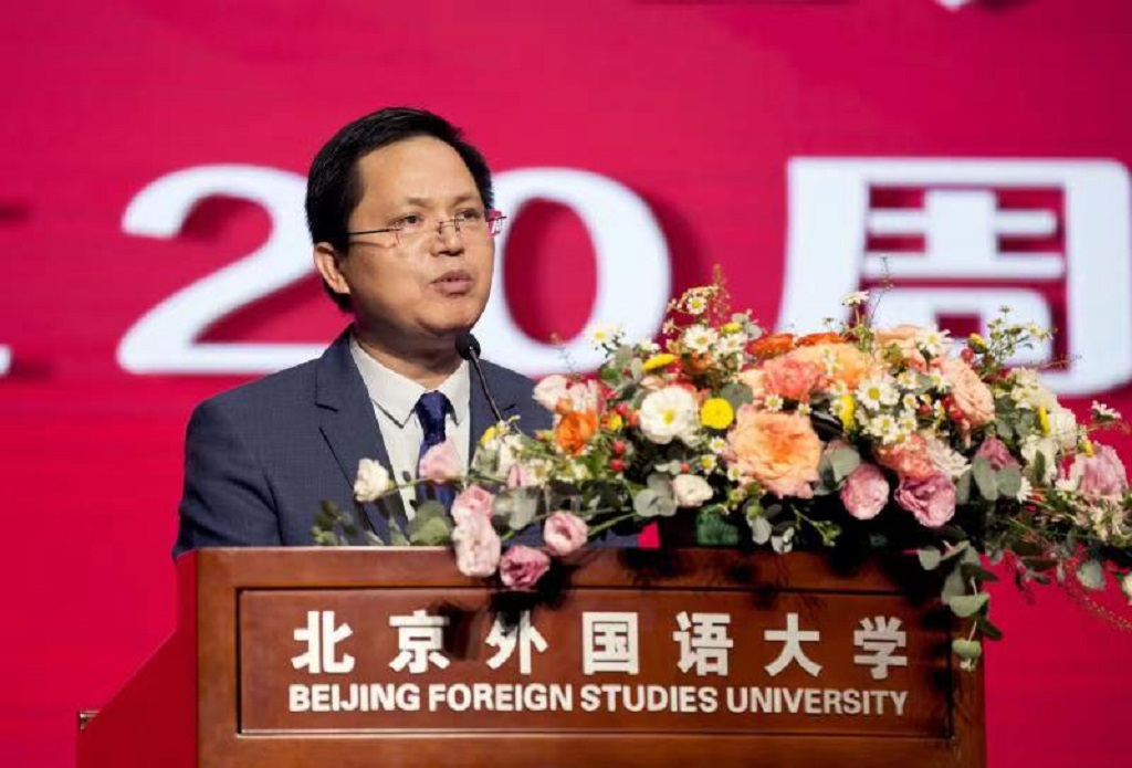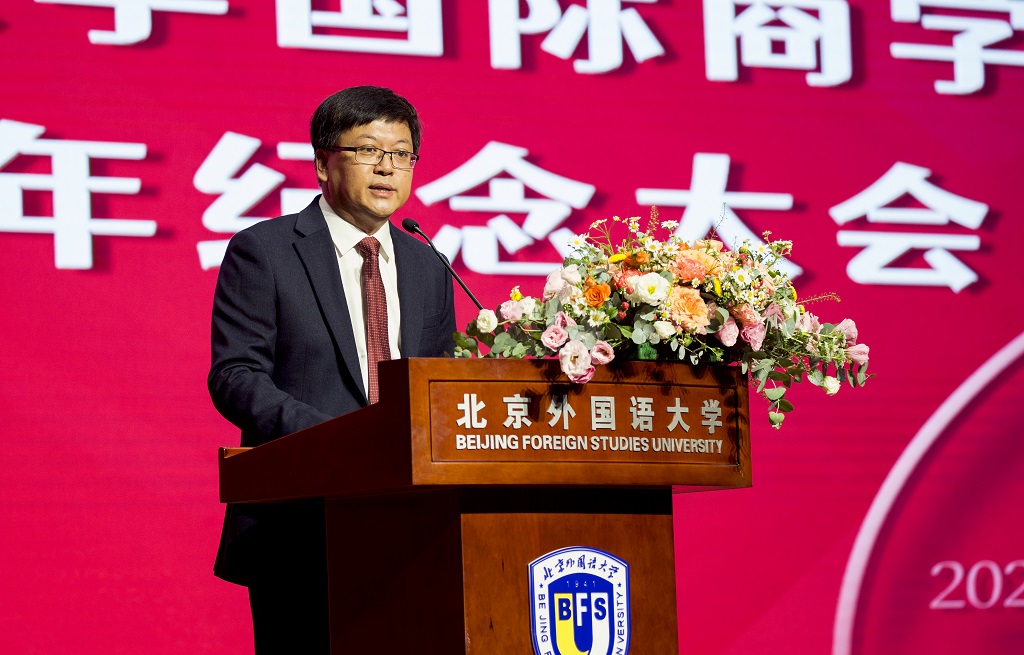 党委常委、副校长贾德忠代表学校讲话,充分肯定了国际商学院建院20周年以来在学科建设、师资力量、办学战略等方面取得的优异成绩,向国际商学院建院20周年表示衷心祝贺。贾德忠表示,国际商学院作为北外目前规模最大、人数最多、最多元化的院系,应致力于推动全球经济发展、立足国家战略需求、努力为党和国家培养输送担当民族复兴大任的新时代复合型商科人才,祝愿北京外国语大学国际商学院的未来更加辉煌灿烂!