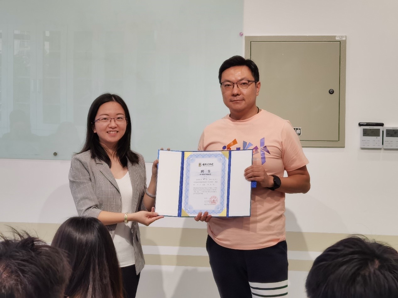 分享会开始,文雯老师向三位校友表示热烈欢迎,并向郁飞先生颁发了“校友导师”聘书,感谢校友回母校与学弟学妹们分享职场经验和人生感悟,助力在校生的职业成长和全面发展。