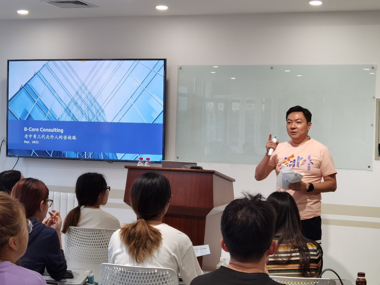 9月29日,国际商学院举办了“实践型学习项目”之“职业生涯规划”活动,邀请到93级校友,现任北京毕括信息咨询有限公司的CEO郁飞先生,12级校友李孙文与15级校友赵洁雅,为同学们进行了主题为“北外老中青三代的咨询路”的分享会。分享会由国际商学院国内合作办公室副主任文雯主持。