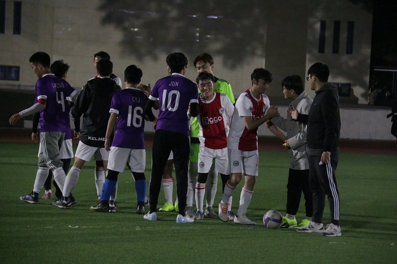 10月20日18:00,北京外国语大学国际商学院男子足球队与中国语言文学学院男子足球队于北京外国语大学东校区操场足球场展开“足协杯”五人制足球赛四分之一半决赛的比赛,并以7:4的比分大胜中文学院,再下一城。