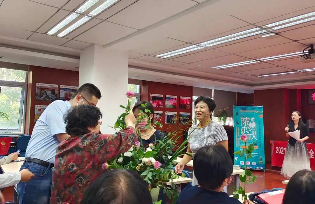 9月17日下午4点,诗会主持人、北外居委会姜希同志宣布“建党百年诗歌朗诵会”正式开始,并向老党员献花。