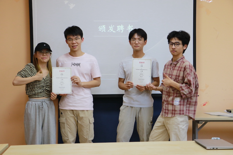 会议伊始,20-21届学生会主席兼团总支常务副书记熊怡琳、副主席向欢发表感言,总结回顾了过去一年的工作,并表达了对团总支学生会新一届骨干们的鼓励与祝愿。随后,两届骨干们就各部门工作进行交接和经验交流,并由20-21届老成员为21-22届新骨干颁发聘书。
