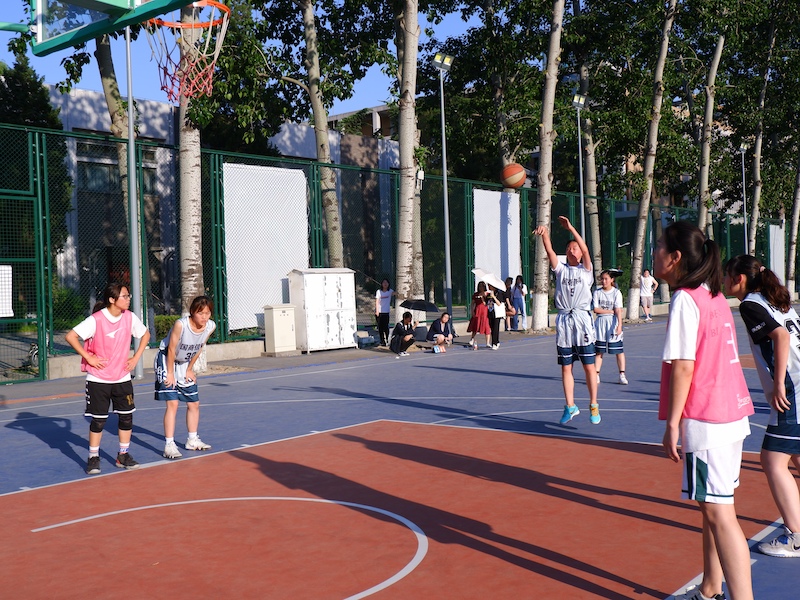 5月29日,国际商学院女子篮球队于东校区篮球场与法学院女子篮球队展开“北外杯”女子篮球赛首场比赛的比拼,最终以52:23的成绩取得本场比赛的胜利。