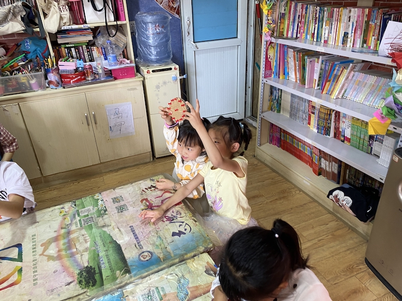 活动前一天,志愿者们通过线上会议的方式草拟了一份活动方案计划书,并且准备了游戏设计中所需的道具,如毛绒玩具、橡皮筋、扎有图钉的圆形纸板等。活动当天下午到达暖暖之家地点后,志愿者们首先与负责人沟通了解了本期参与活动的孩子情况,随后按照计划安排正式开始游戏。本期活动的设计以游戏为主,以课程为辅,以期让孩子们释放天性,在玩乐中获得人际关系的经验以及道德修养上潜移默化的影响。