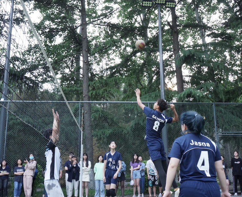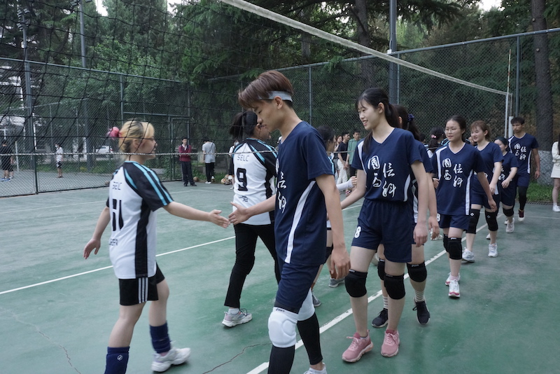 5月13日18:00,北京外国语大学新生排球赛1/4决赛于东校区排球场进行。经过一番激烈对决,国际商学院新生排球队以3:0的绝对优势战胜欧洲语言文化学院排球队,挺进半决赛。