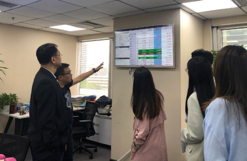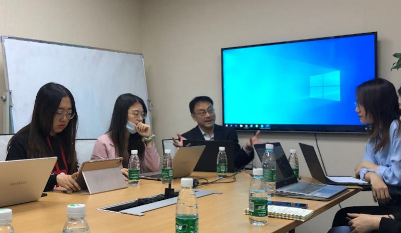 5月14日上午,同学们继续与副总经理张忠探讨课题准备的问题,关于如何将同学们准备的两个课题结合起来,张总提出了很多建设性的建议。随后,张总又为同学们分享了许多国内外汇市场的专业知识,和同学们探讨了外汇线上电子课程的发展方向和趋势,还对同学们的职业规划提出了许多建议。现场气氛活跃,张总与同学们交流融洽,同学们十分感谢张总分享了如此宝贵的经验谈。最后,老师与同学们再次向迪威格表示感谢。