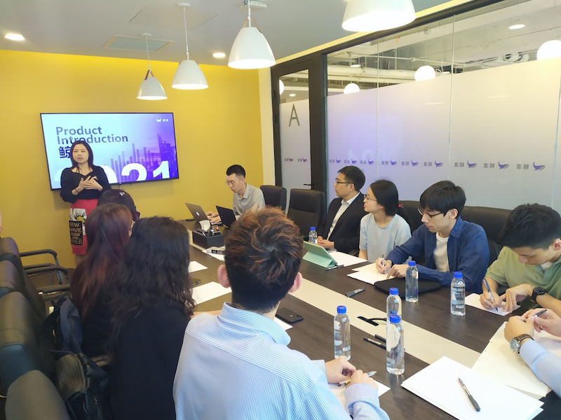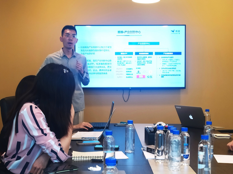 本次企业参访共分为七个环节。首先,鲸准海外关系负责人徐思琪组织带领大家参观了办公环境,并介绍了企业布局和业务分类。随后,鲸准战略副总裁及法务负责人林曦对公司基本情况和发展历程进行了概述,鲸准作为国内领先的新经济金融服务商和独角兽企业、国家高新技术企业及致力用科技连接产业,为企业、政府、金融机构提供从数据到解决方案多种金融科技服务。具体而言,其主要业务范围涵盖创业者服务、金融科技、产业服务三大模块,包括为投融资搭建对接平台、提供业务与管理解决方案以及产业创新服务,从而助力打造具有区域竞争力和带动力的新经济产业体系,实现经济转型升级。