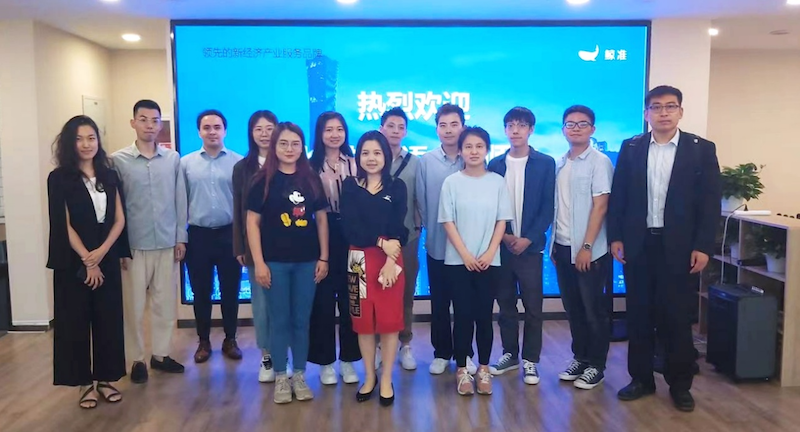 2021年5月12日下午,国际商学院与北京鲸准数服信息科技有限责任公司共同组织了为期两周的专业硕士企业参访活动。10名国际商学院2020级国际商务及会计专业的研究生前往鲸准进行实践,本次参访由国际商学院穆远东老师带队并指导,师生一行受到企业热烈欢迎。