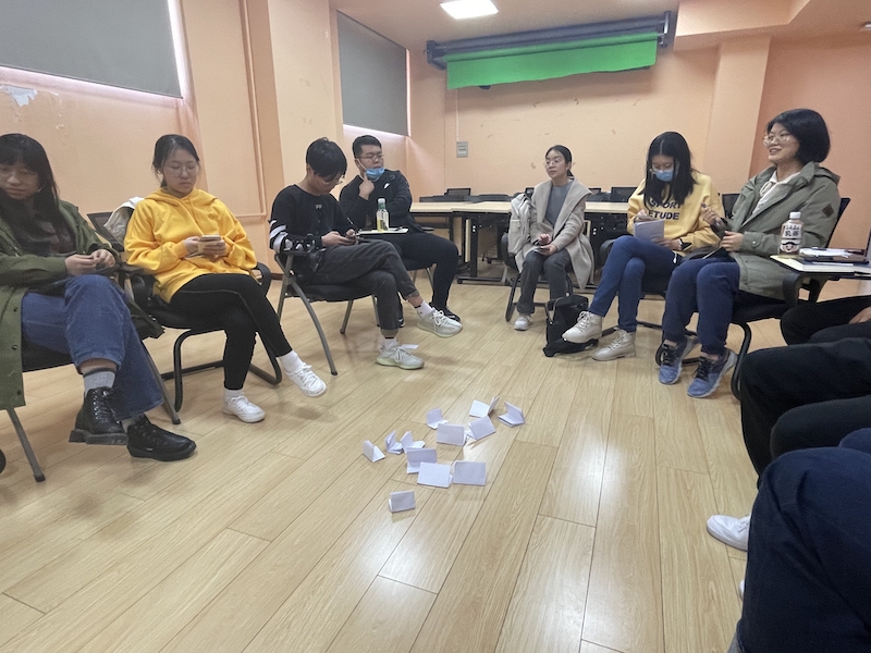 活动开始,周倩老师首先让大家以自己的姓名加爱好串串烧的形式进行自我介绍,让同学们相互熟悉,活跃了现场的氛围。紧接着,老师依次带领同学们抽取卡片、进行表情表演、并通过辩论等形式向同学们普及了情绪理论和情绪正反面的有关知识,促进了同学们对情绪两面性的思考。最后,周倩老师对本期活动进行了梳理和总结。