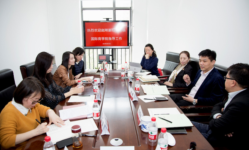 4月15日上午,党委常委、副校长赵刚到国际商学院调研指导工作。国际商学院学党政领导、院学科建设委员会委员参加了会议。