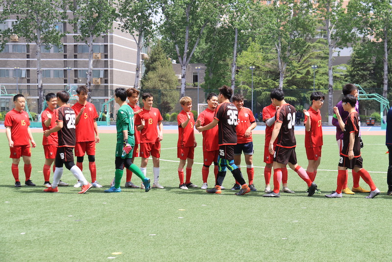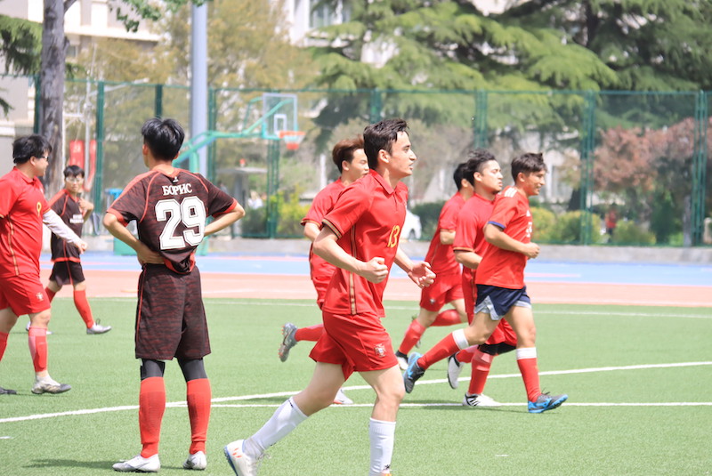 4月27日12:20,北京外国语大学国际商学院男子足球队与俄语学院男子足球队于足球场开展“北外杯”足球赛第二场小组赛的对决。国商男足最终以2:2的比分战平对手。
