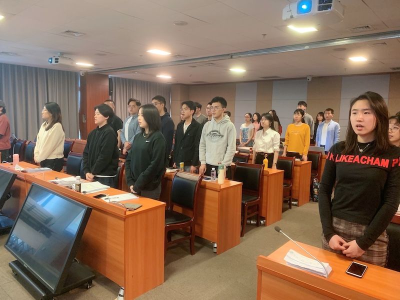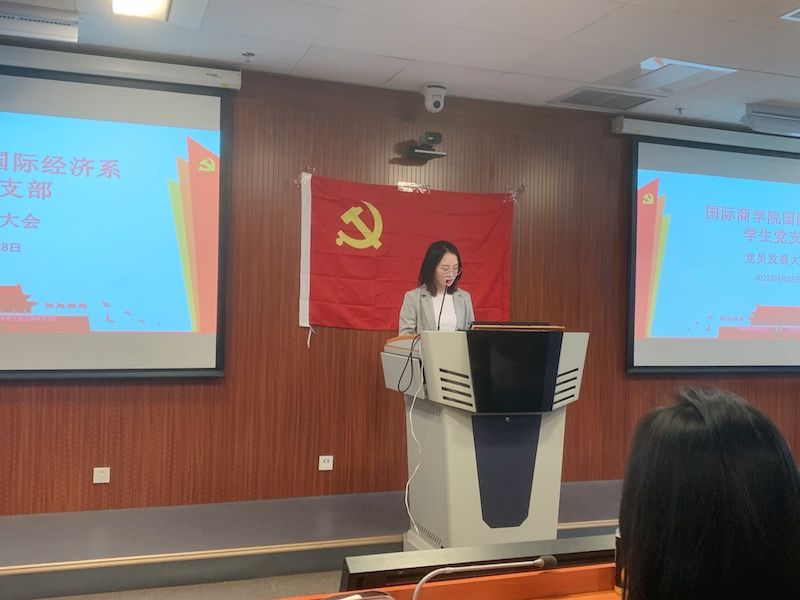 2021年4月28日下午一点,国际商学院国际经济系学生党支部于国际大厦417召开国际经济系学生党支部党员大会暨四月党史学习交流分享会,讨论关于范宣宏,潘琪,邱楚雁,王怡秋等10位发展对象转为预备党员的问题。本次大会由国际经济系学生党支部书记杜倩同志主持,学校党委组织员潘亮老师和林普华老师,国际商学院学生事务办公室辅导员谭佳琳老师出席大会。应到会有表决权党员25人,实到会有表决权党员20人,超过本支部有表决权党员半数以上,符合规定人数,可以开会。在清点与会人员并宣布到场情况后,与会人员合唱国际歌。发展对象分别宣读《入党志愿书》,汇报对党的认识、入党动机等。由入党介绍人介绍发展对象的基本情况,并发表意见。支部委员会向大会报告发展对象的审查情况及公示情况。
