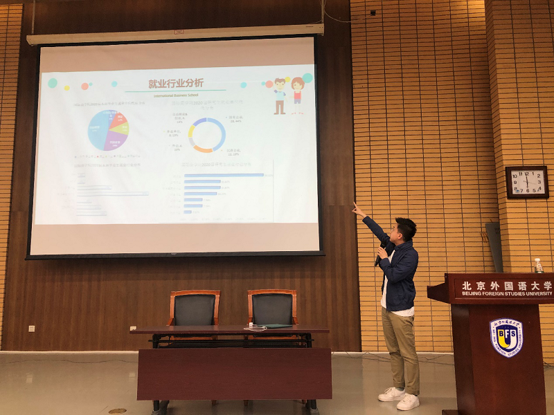 为引导学生树立正确的就业观,掌握求职技能,提升自身综合能力和就业竞争力,积累求职经验,2021年4月27日下午,国际商学院在逸夫楼第三阶梯教室举办了就业政策专题讲座暨就业报告会。本次讲座由北京外国语大学就业创业中心方卉、国际商学院学生事务办公室主任、研究生团总支书记李文斌主讲,国际商学院2022届毕应届毕业生参与此次讲座。